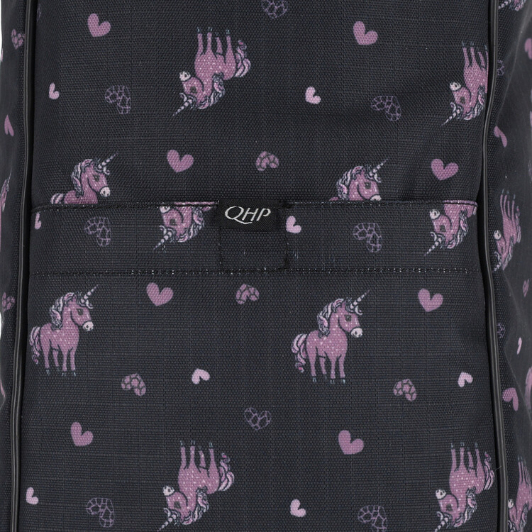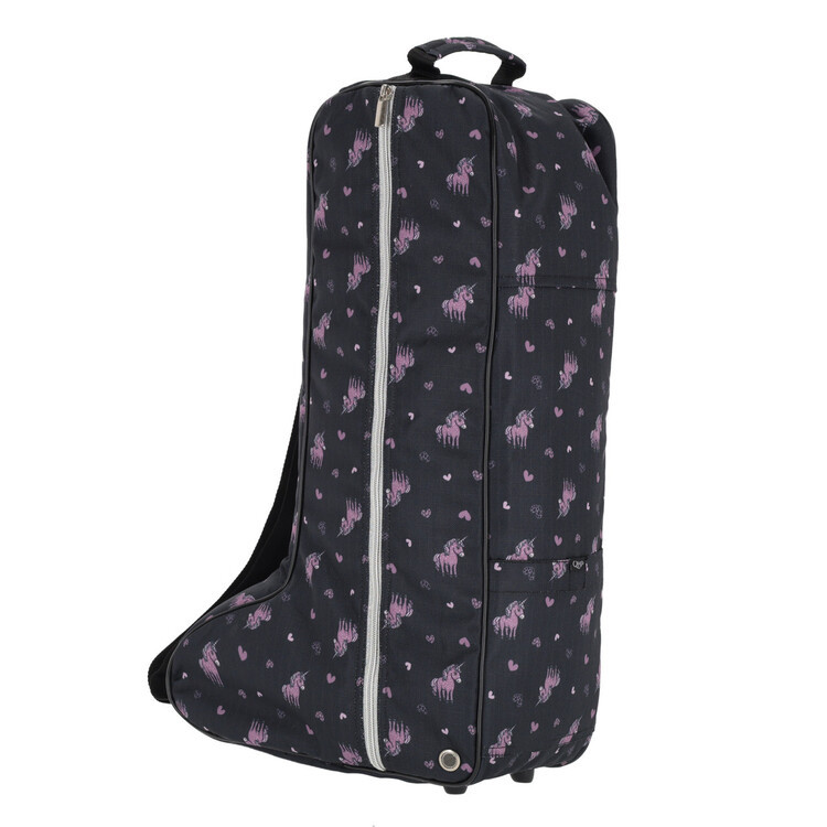 Laarzentas uit de Lize collectie om je laarzen veilig op te bergen. De tas heeft een handvat, een verstelbare schouderband en een tussenschot om je laarzen te beschermen. Voorzien van ritsen aan beide zijkanten, ventilatiegaatjes en een vakje met klittenbandsluiting. Afgewerkt met een lusje met QHP-logo en rubberen voetjes aan de onderkant.