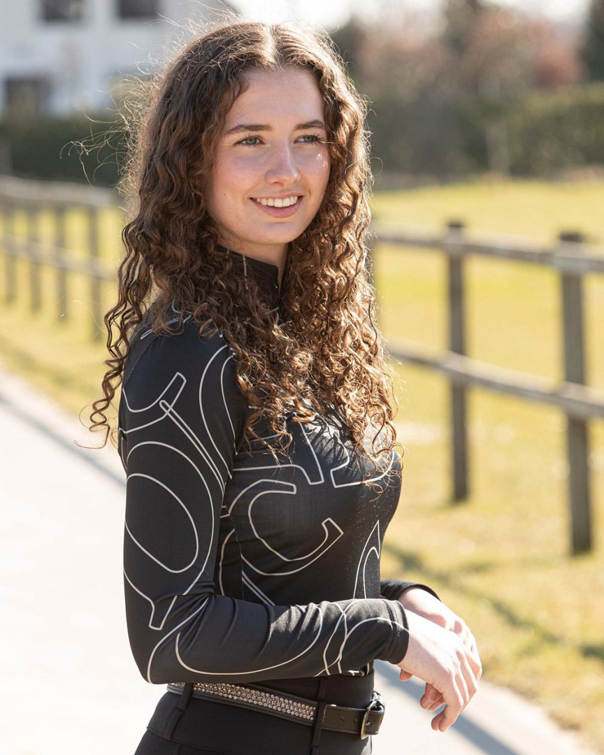 Super leuk shirt van Harry's Horse met lange mouw, opstaande en afgeronde kraag naar de korte rits toe. Grote Denici Cavalli allover print random geplaatst op het gehele shirt waardoor ieder shirt uniek is.