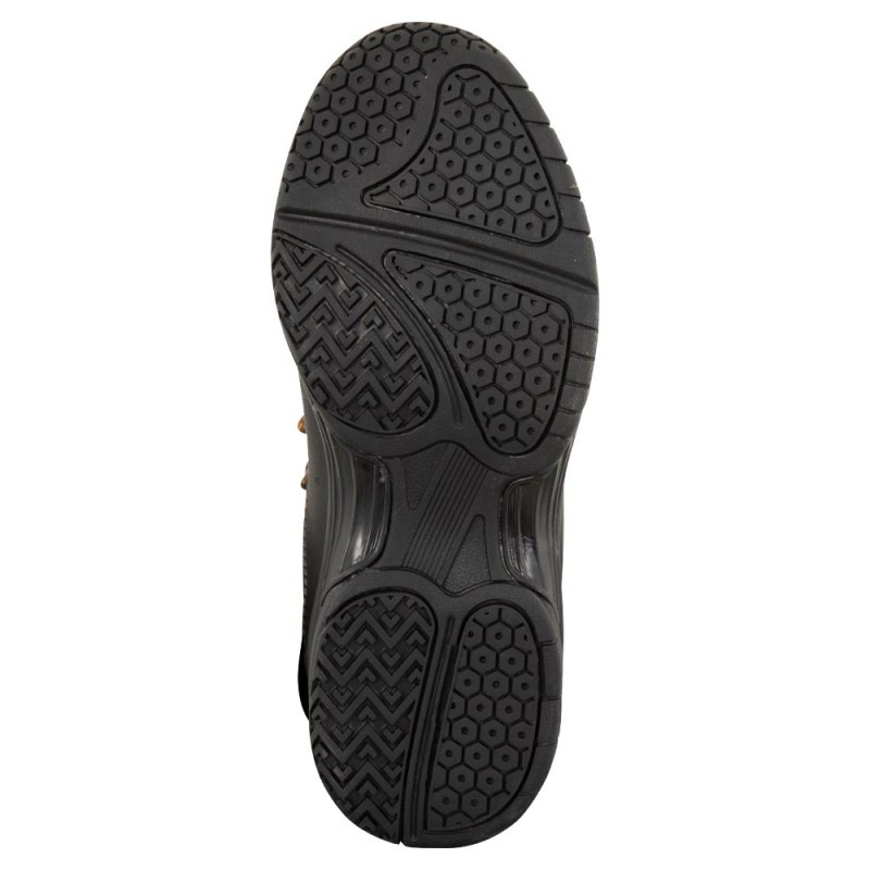 De schoen is aan de buitenkant verfraaid met contraststiksel en is voorzien van een stevige veter en verstevigde neus, hiel en zijkanten.
